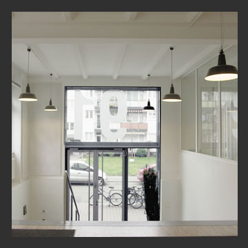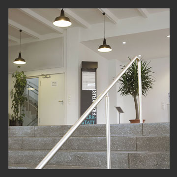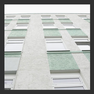 Sachlich-moderne Architektur (Stahlskelettbauweise); daher variabel und individuell aufteilbar;