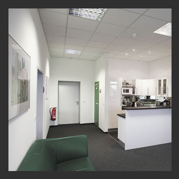 Sachlich-moderne Architektur (Stahlskelettbauweise); daher variabel und individuell aufteilbar;